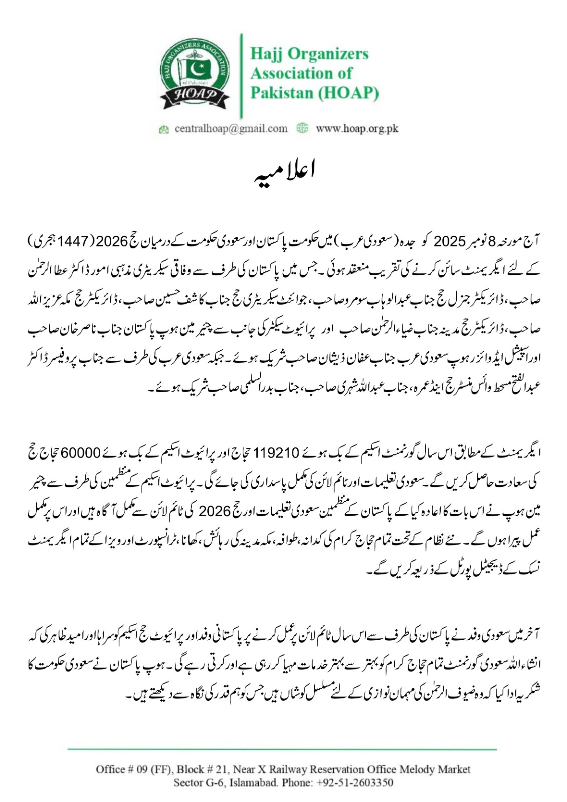 Expediting Booking of Fresh hujjaj 24.09.2025