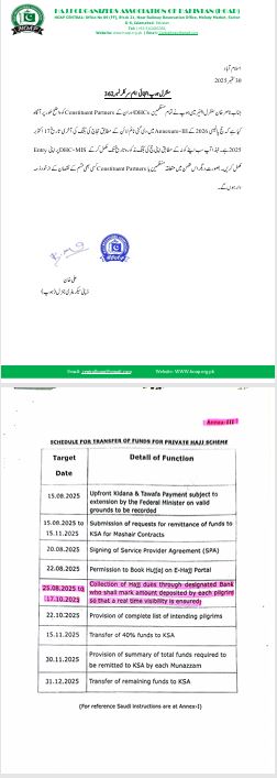 Expediting Booking of Fresh hujjaj 24.09.2025