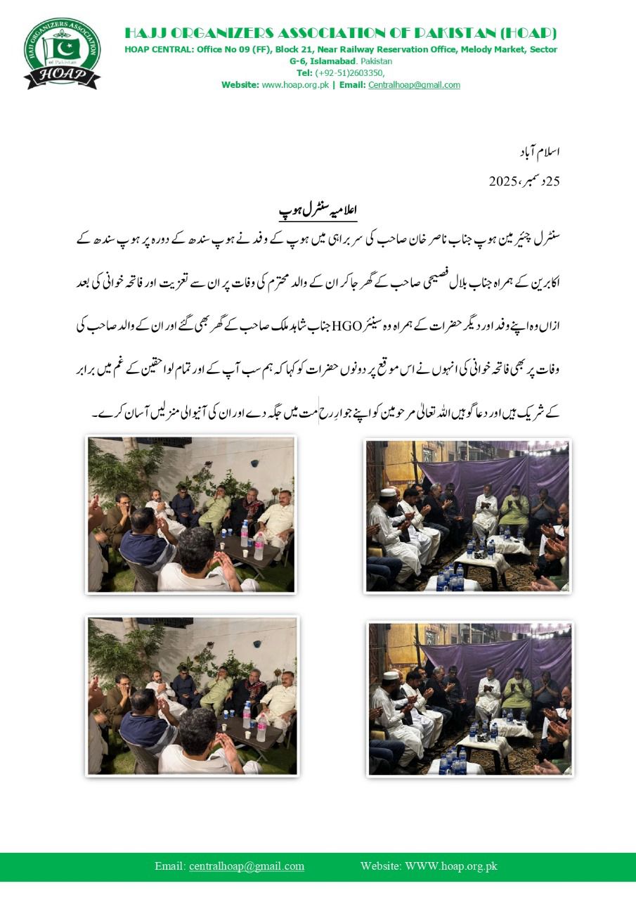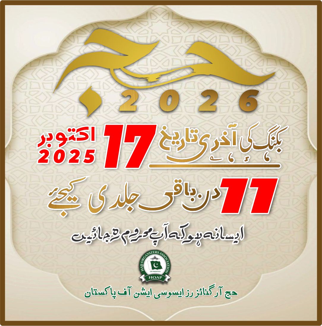 Hajj Organizers Association of Pakistan (HOAP) was founded in Month of May 2005 by the HGO’s registered with Ministry of Religious Affairs Government of Pakistan.
